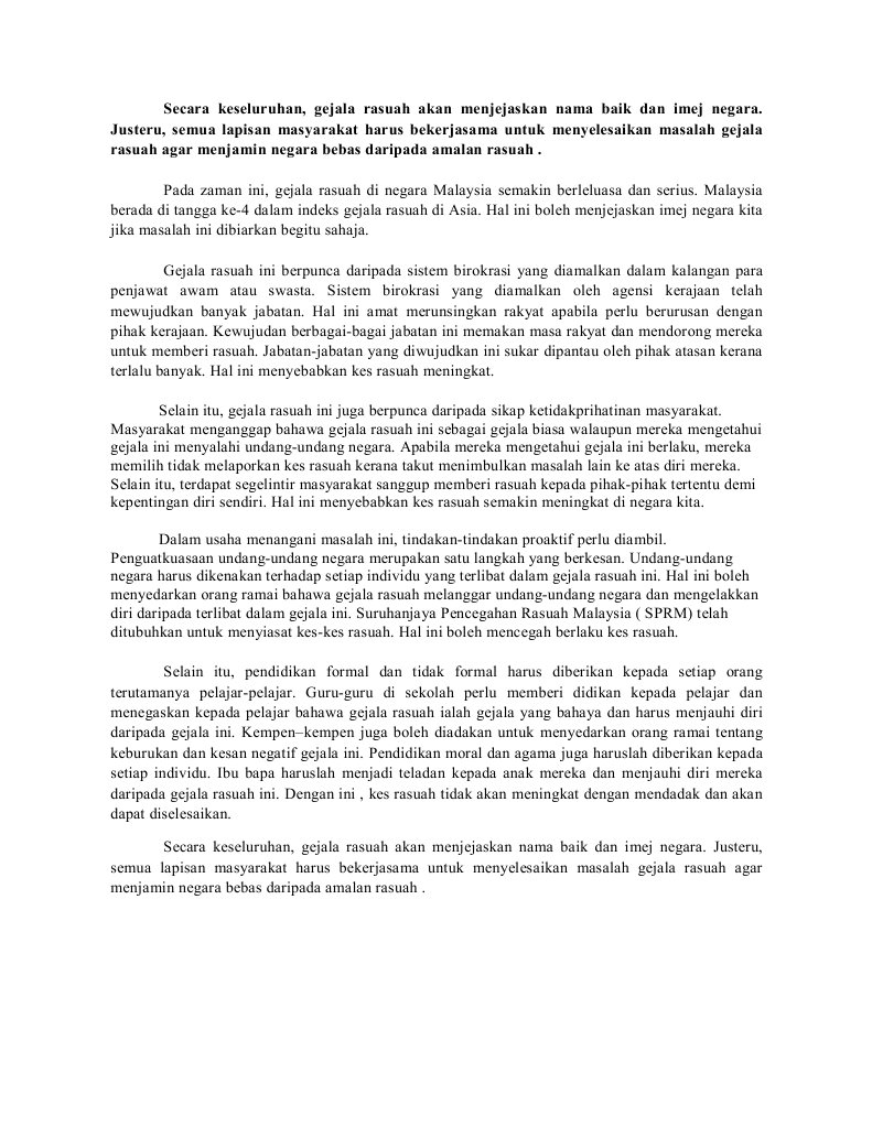 Download Free PDF View PDF. Contoh Karangan Punca-Punca Dan Kesan-Kesan Rasuah. Up to 24 cash back Contoh Karangan A SPM DAN PT3.
